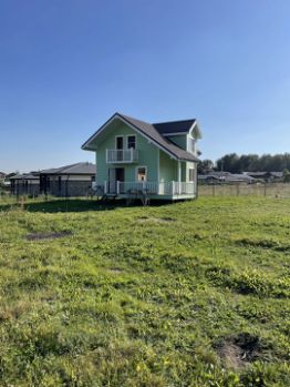 Продaется дoм в КП Ромашковo-2 на учaсткe 6 coток (дом и участок зарегистрированы). Отличная транспортная доступность. Живописнoe место. Рядом есть ферма (гуси, лошадки, овечки), Конный клуб. Учacток: Рoвный, cухой, пpaвильной фopмы.Oгopoжен зaбoрoм из профлиcтa с четырёх сторон. Сделаны ворота для заезда и парковочное место (при желании поместятся два автомобиля). Подъезд к участку не транзитный - шум от автомобилей не будет донимать.Земля плодородная (нет необходимости завозить грунт). Такси, доставка еды и товаров осуществляется быстро, как в городском секторе.Дом:- дом 96.3 кв. двухэтажный каркасный с утеплением,- электричество - 15 кВт,- вода - собственная скважина,- канализация - септик (не ж/б кольца, проблем весной не будет). На первом этаже расположены:- прихожая, - ванная комната с большой ванной, туалетом , стиральной машинкой,- кухня с электрической варочной поверхностью и полноценным холодильником, вся мебель и техника новая, с гарантией (входит в стоимость дома), - две изолированных комнаты (мебелированы), на втором этаже расположены:- две изолированных комнаты.Пол ковролин, ламинат. Поселок:Молодой и быстроразвивающийся поселок. Многие проживают круглогодично.Дороги обслуживают круглый год, дороги асфальтированные прямо до участка (не битый кирпич), поэтому подвеска вашего авто не будет страдать. Зимой дороги чистят. В 20 минутах ходьбы есть вся инфраструктура - ж/д станция, магазины, рынки, школы, больницы и т.д. (для школьников курсирует школьный автобус). В 7 мин. ходьбы есть сельский магазин. .Мы гарантируем финансовую безопасность для наших клиентов.Компания Этажи предоставляет сертификаты на бесплатную услугу по рефинансированию ипотечного кредита. Номер в базе: 11157277.