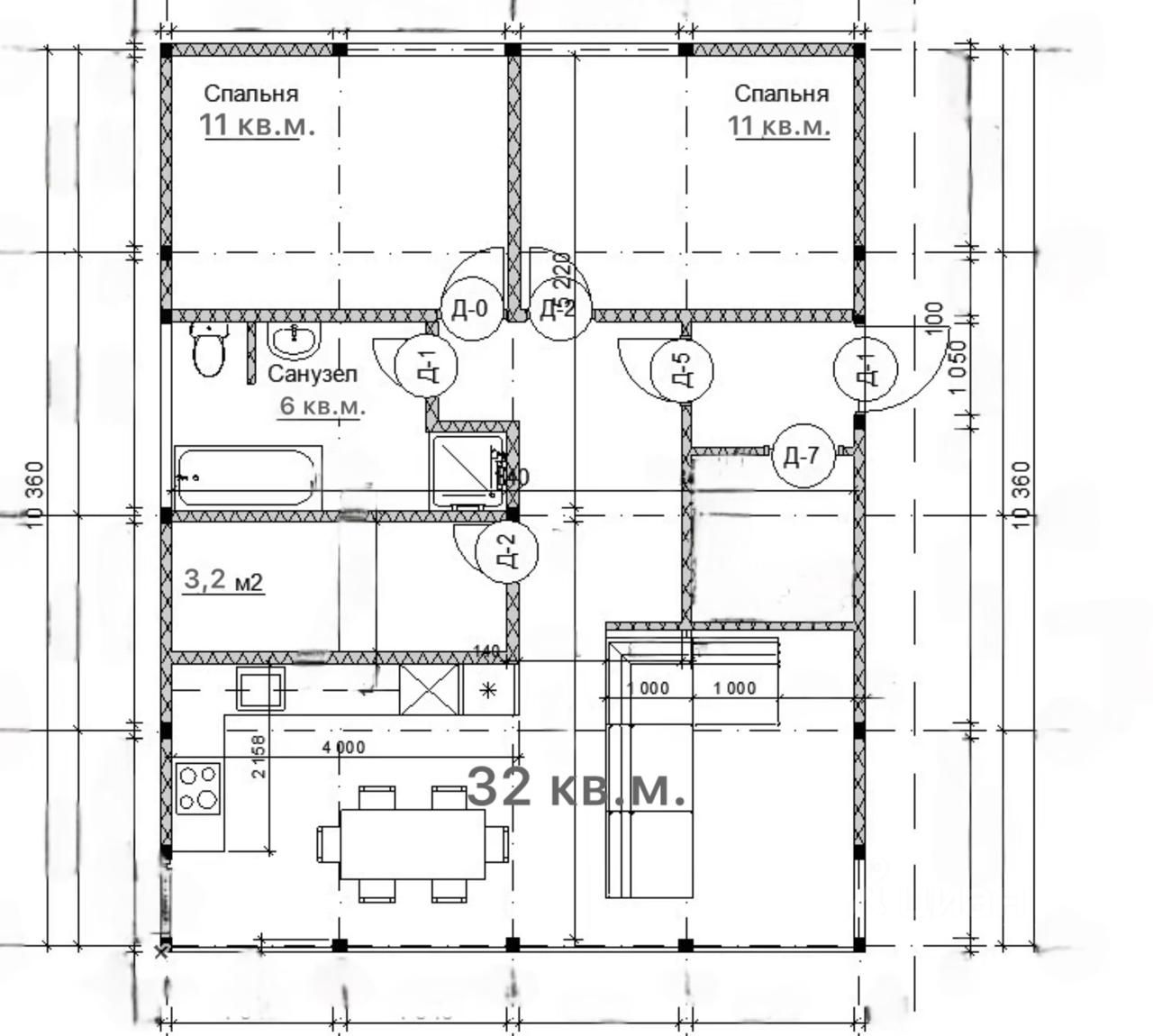 * Просторная кухня-гостиная (32 кв.м), 2 уютные спальни (по 11 кв.м), санузел, котельная, холл, прихожая с гардеробной.