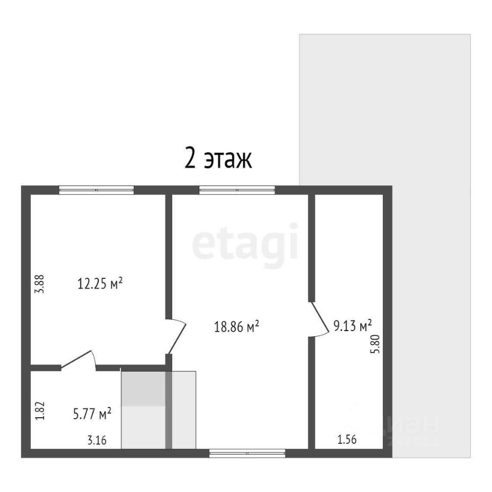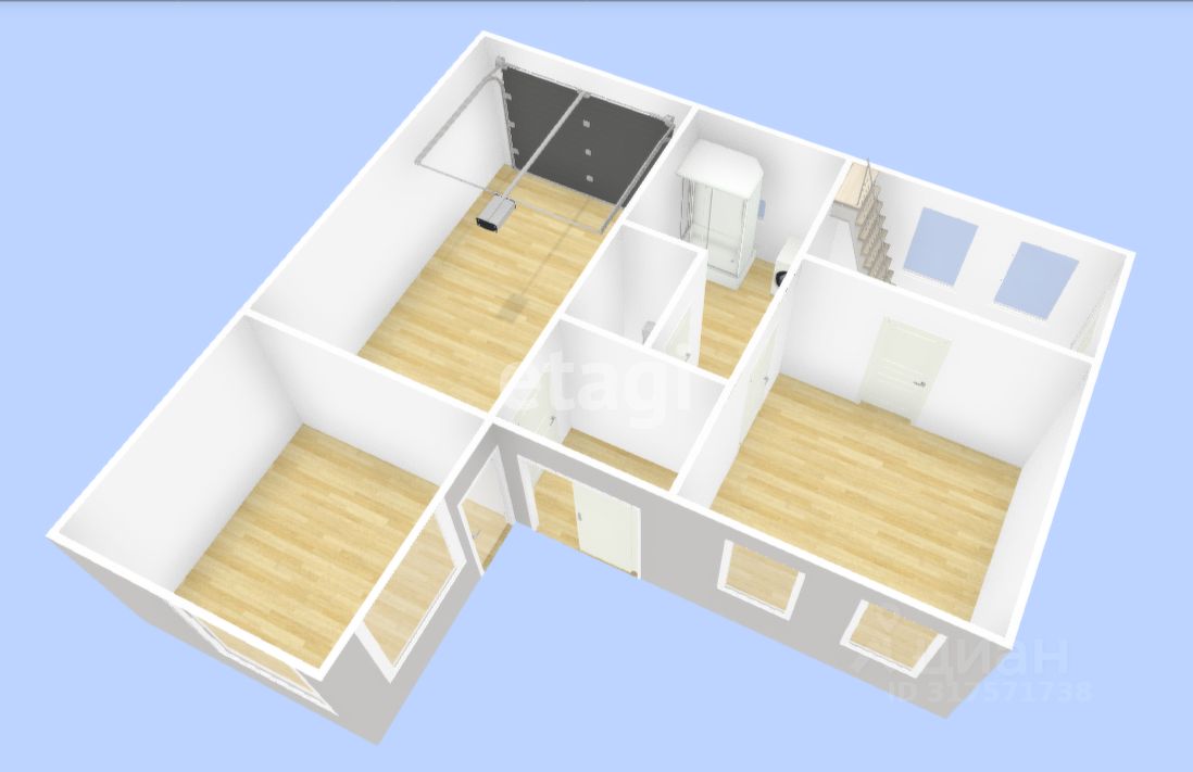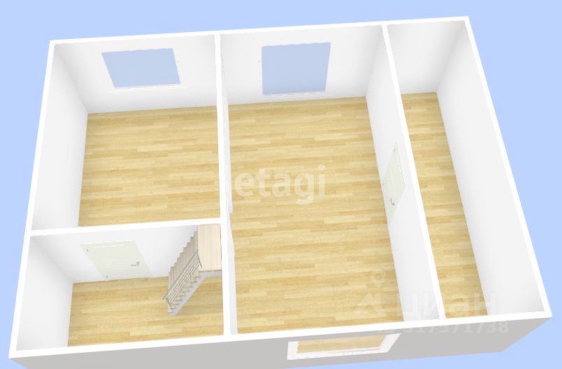 На первом этаже расположены 1 большая комната, а также раздельный санузел. На втором этаже 2 комнаты и помещение для хранения.