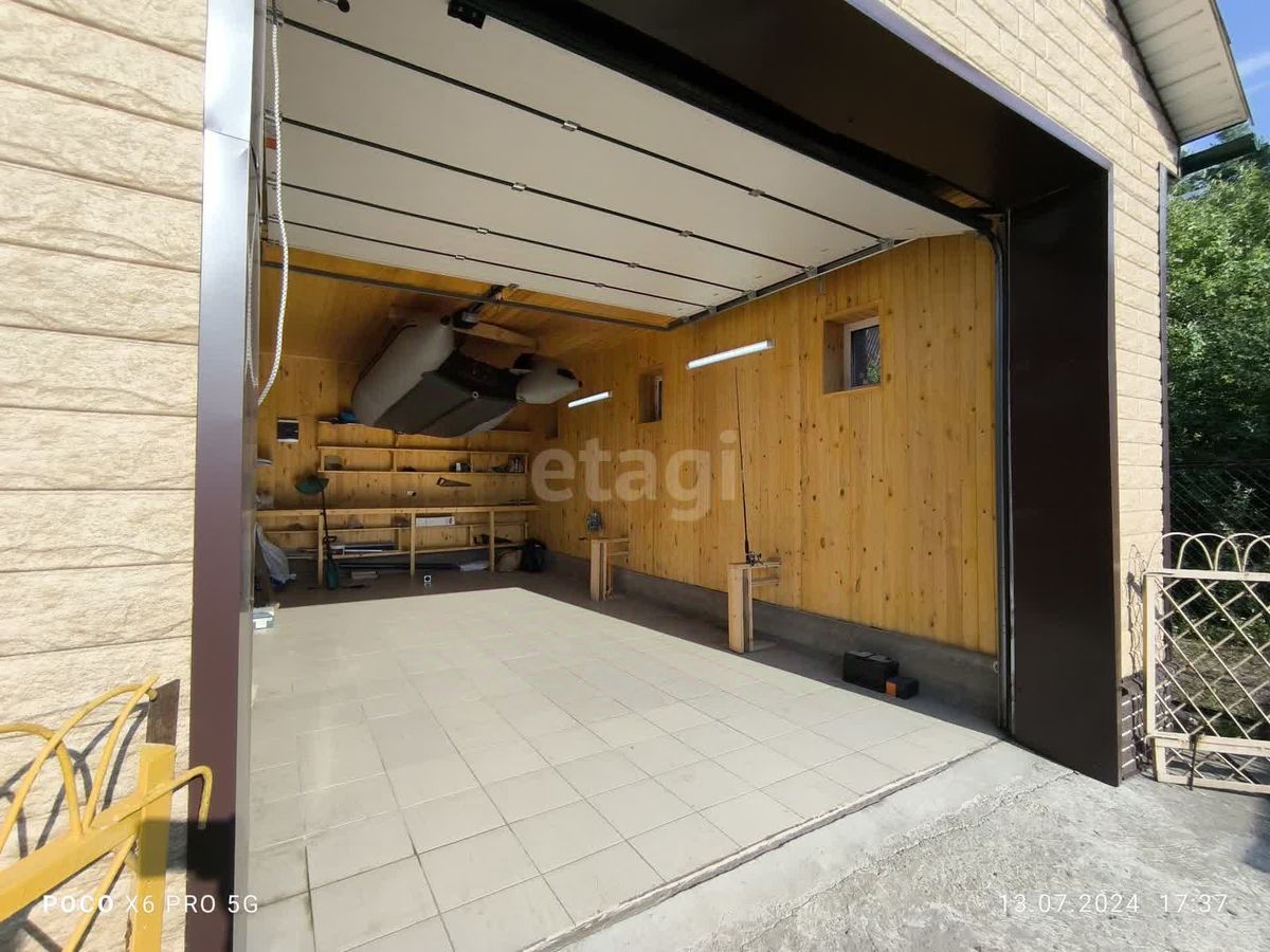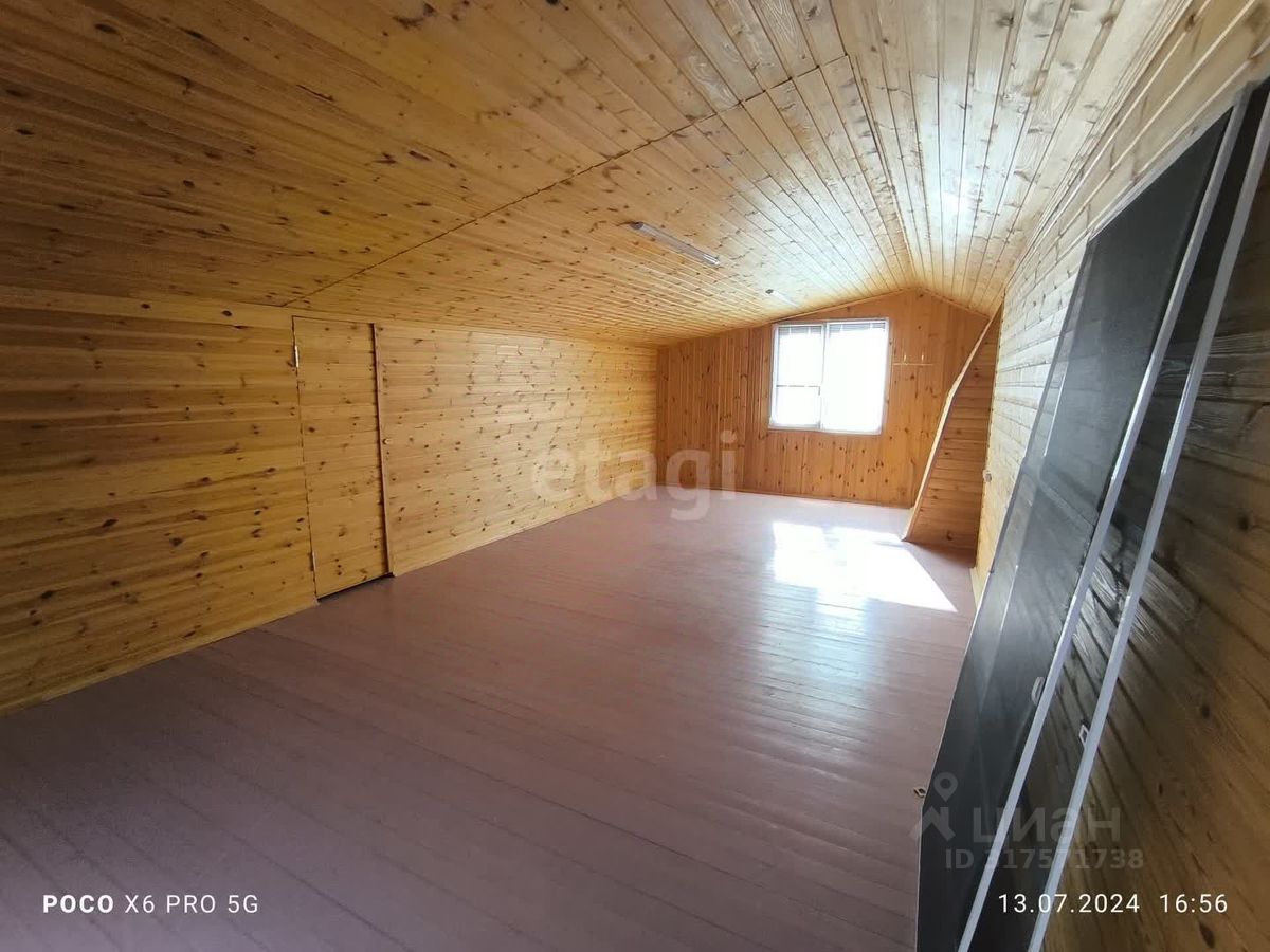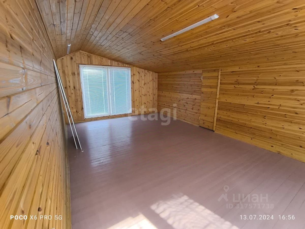 На первом этаже расположены 1 большая комната, а также раздельный санузел. На втором этаже 2 комнаты и помещение для хранения. На участке помимо дома расположена оборудованная баня с душем. Теплица, огород, плодово-ягодные деревья. Участок весь огорожен по периметру , помимо гаража есть парковочное место.