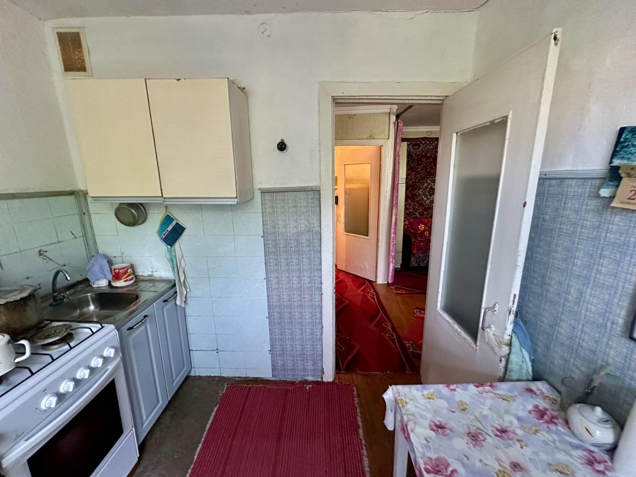 Квартира в нормальном состоянии, на фото и видео все видно. Комнаты смежные, есть кладовка, с/у совмещенный.