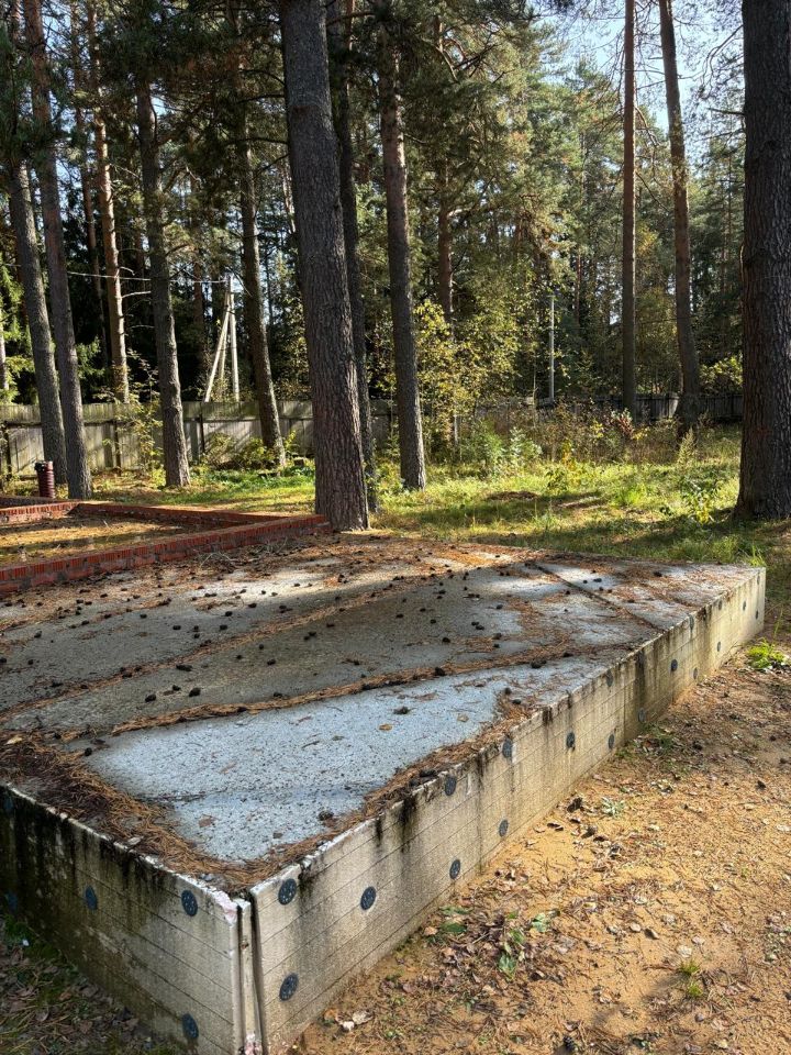 На участке проведено исследование грунтов. Сделан добротный фундамент - железобетонная монолитная плита размером в плане 12 х 14 м на подушке из песка и гранитного щебня. На этот фундамент можно поставить любой дом. Высота плиты- 60 см,( в т.ч. 20 см в земле + 40 см - цокольная часть). Заливка фундамента производилась летом 2024 года. Закладные под эл-во, водопровод и канализацию установлены.