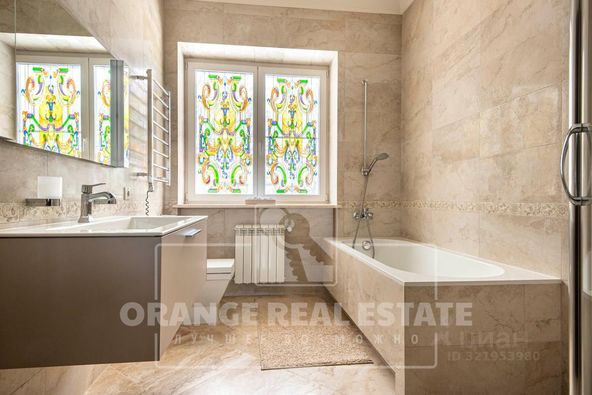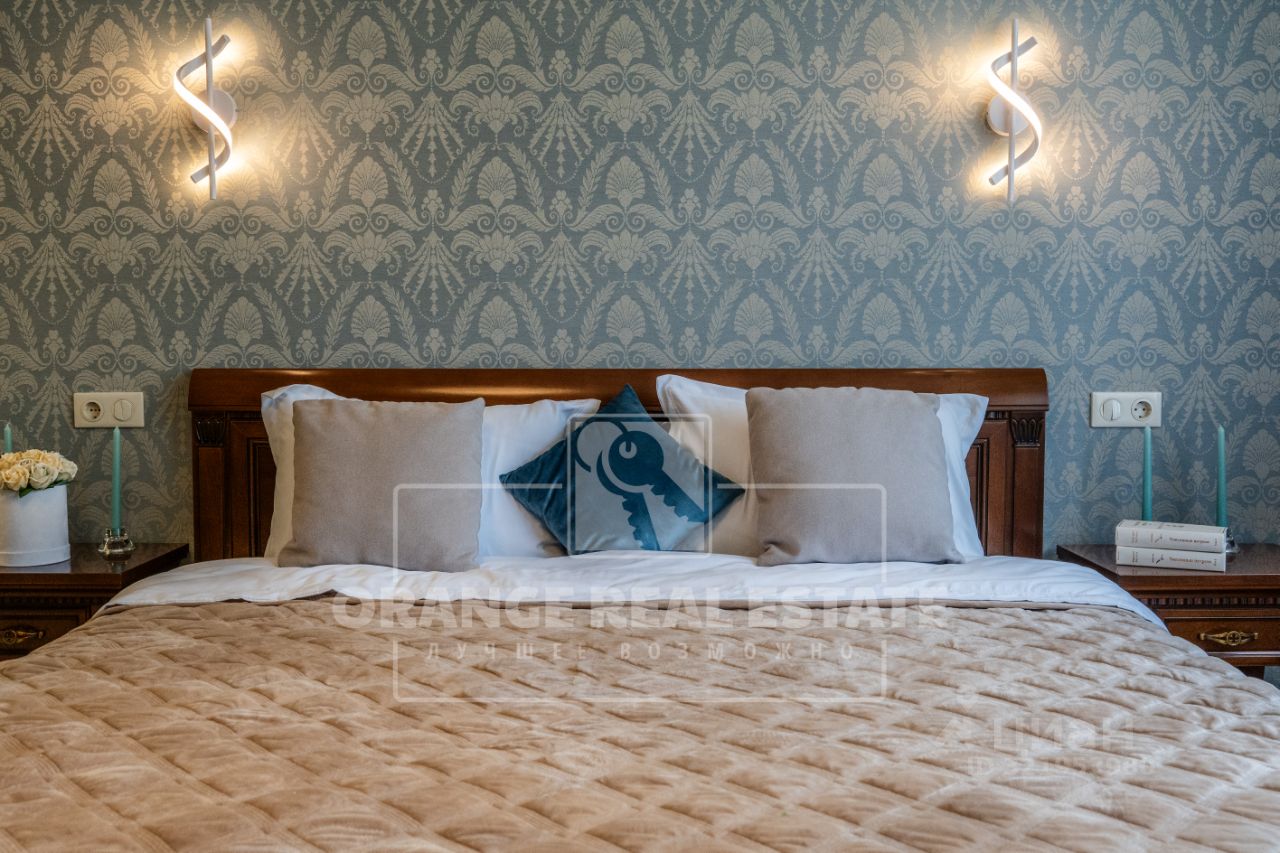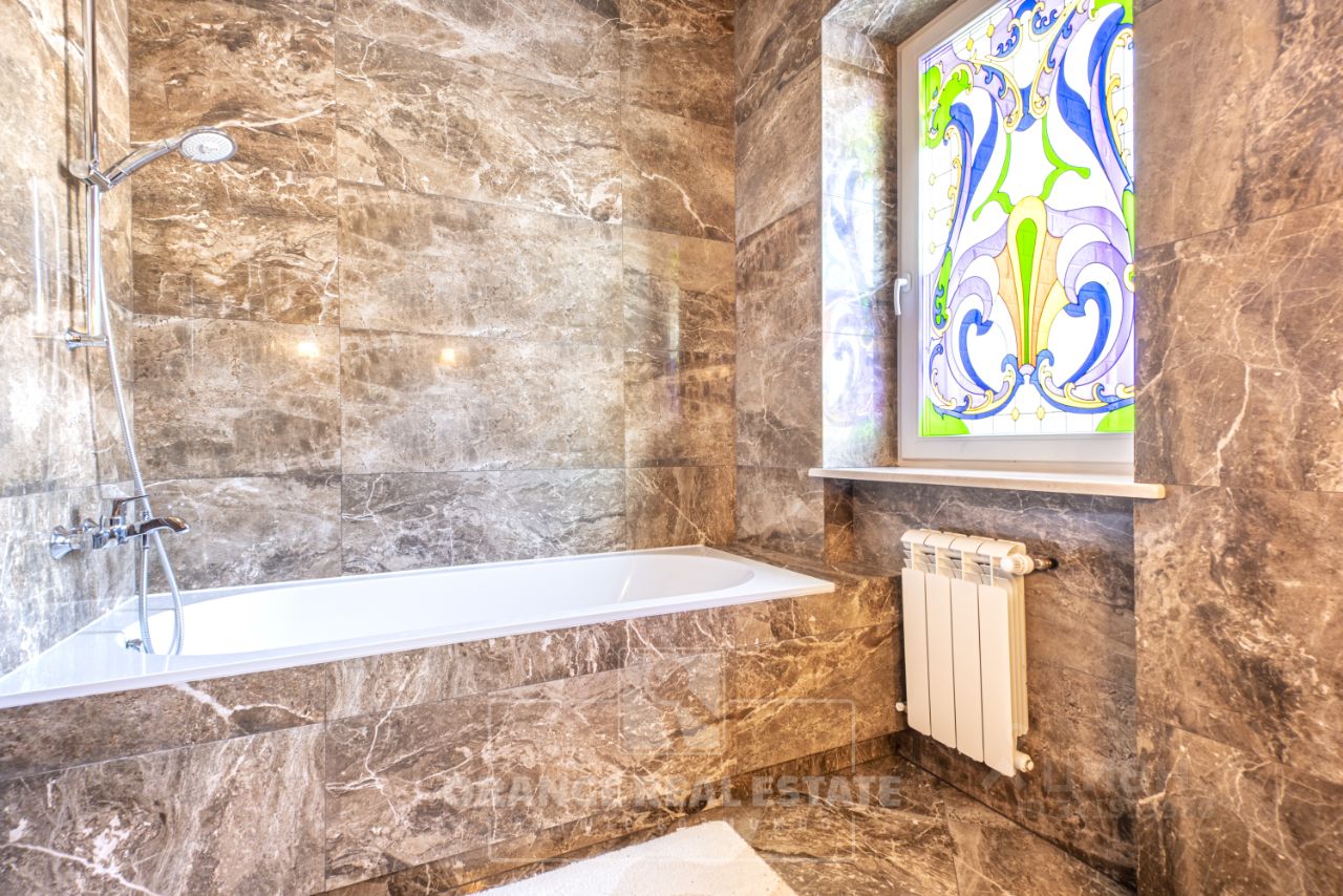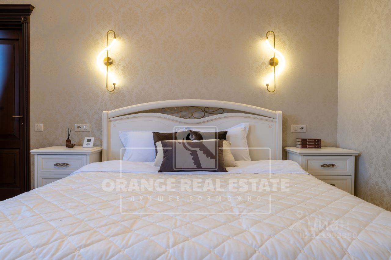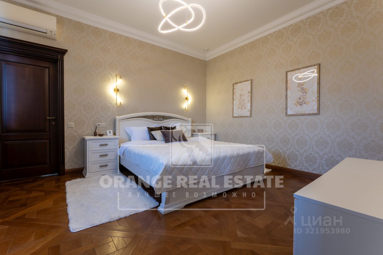На стенах эксклюзивные шелковые обои, венецианская штукатурка, пол - мрамор и наборный паркет. Панорамное остекление, витражи. По периметру дома - видеонаблюдение. На участке выполнены ландшафтные работы, высажены взрослые сосны и туи. Дополнительно предусмотрен навес для автомобилей.