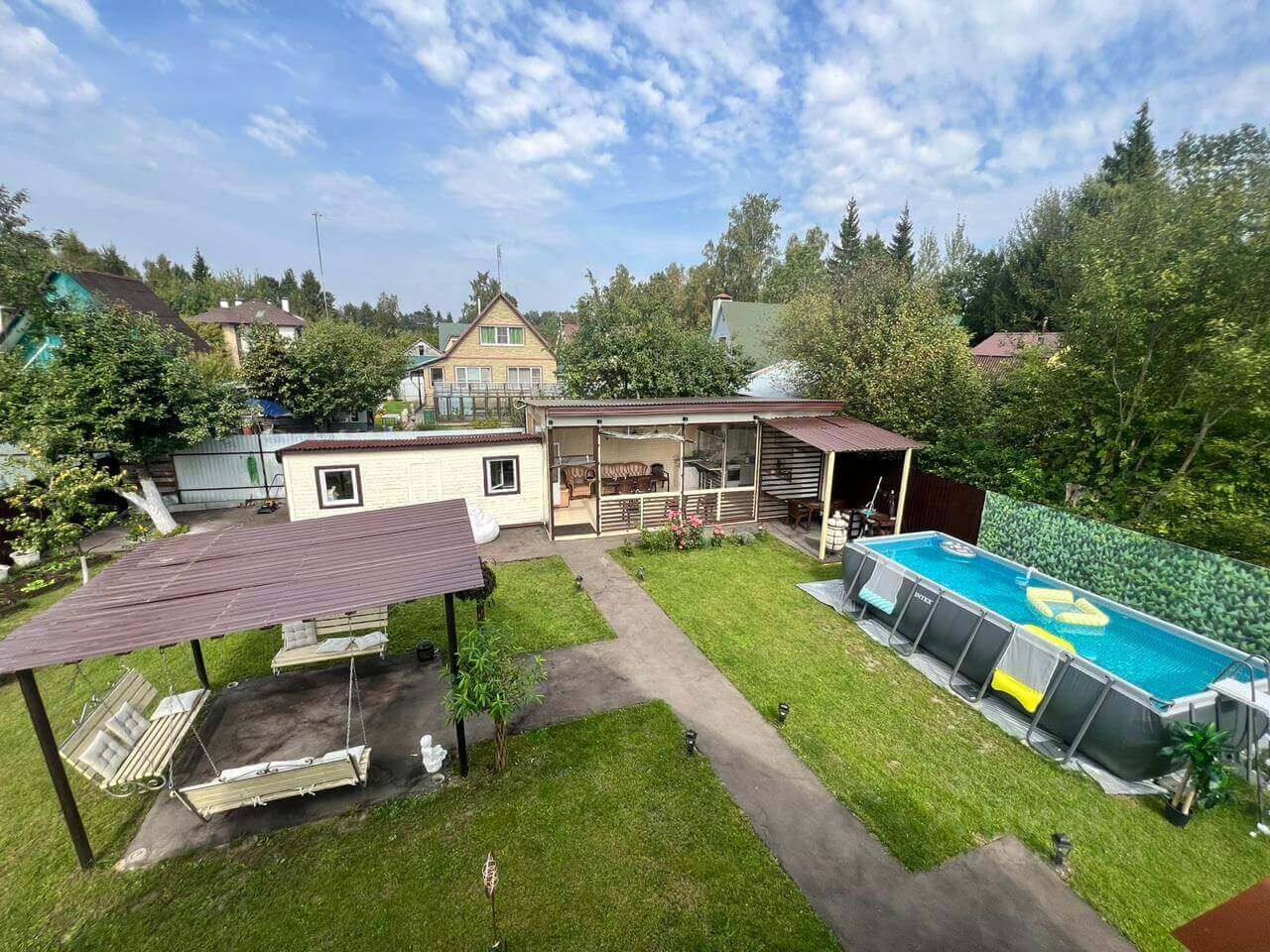 Продается замечательный, загородный, двухэтажный дом 57 м² с участком 6 соток в СНТ Знамя-2, 40 мин езды от МКАД. Все есть для проживания, заезжай и живи. Дом стоит на кадастровом учете. Можно прописаться. Планировка: На первом этаже — просторный зал с двумя раскладными диванами, комната для отдыха с раскладным диваном, санузел, тамбур. На втором этаже находятся просторная спальня с новой мебелью, двумя раскладными диванами. Внутри дом отделан деревом. Во всем доме натяжные потолки. Вся мебель новая и подобрана с любовью под каждую зону отдыха. Также покупателям остается вся техника. как бытовая, так и садовая в рабочем состоянии. На участке 6 соток находится летняя веранда, мангальная зона, бассейн, теннисный стол. На территории находится хозблок. По периметру территории растут хвойные и плодовые деревья (яблоня, слива, пихты, туи), вся придомовая территория и дорожки асфальтированы, имеется зона отдыха с качелями. Перед домом есть место для машины.