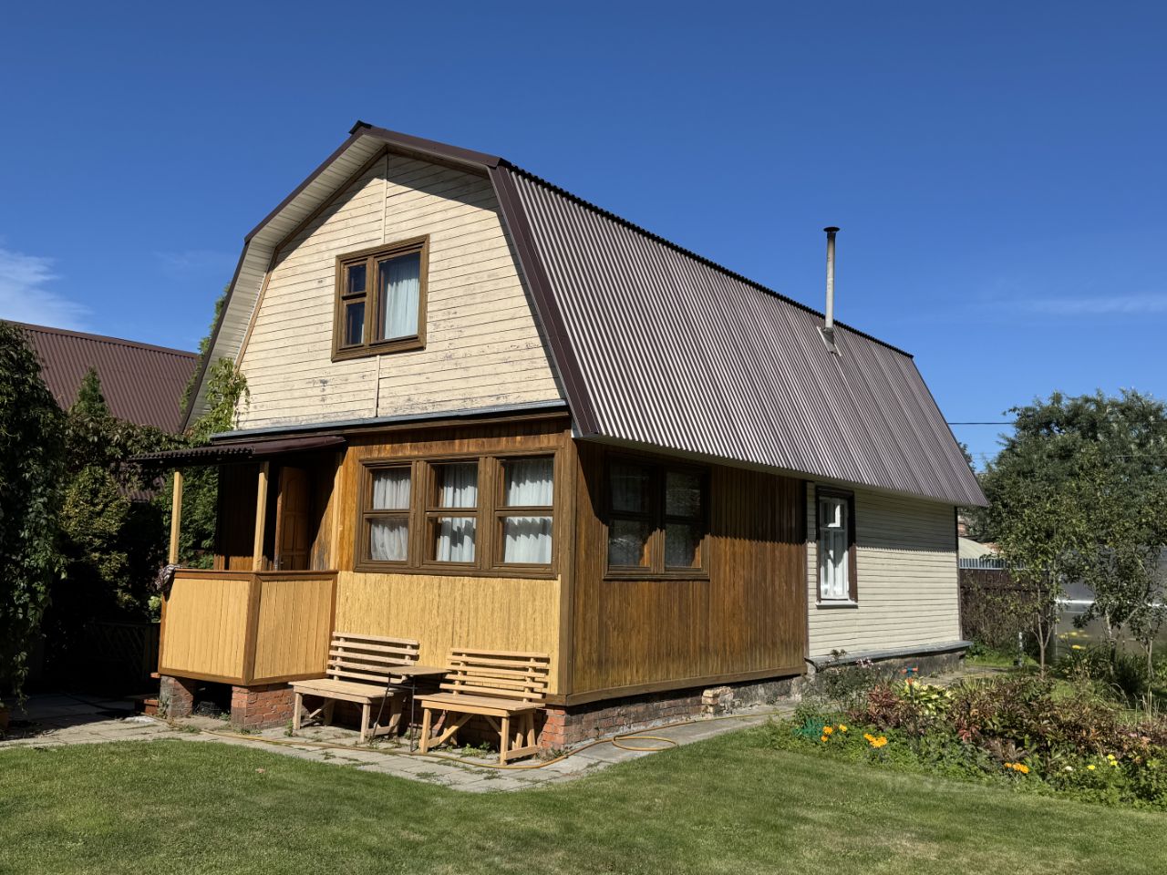 Продается ЗИМНЯЯ уютная дача д. Надеждино СНТ Текстильщик-3. Дом 80 кв.м., БРЕВЕНЧАТЫЙ, пристройка - брус. Дом оформлен, как ЖИЛОЙ, регистрация по месту жительства! 1-ый этаж: гостиная 22,5 кв.м., комната 16,4 кв.м., маленькая кухня. 2- ой этаж: холл, две комнаты 12,4 и 13,2 кв.м., ниши для хранения. В доме печное отопление, электричество. Вода колодец (бетонированный и кольца, вода не замерзает зимой!). На участке летняя кухня с баней и душевой - 22,3 кв.м., без учета подвала, хоз. блок для хранения, туалет. Участок красивый и ухоженный! Газон, дорожки, плодовые и садовые деревья, цветы, два парника, декоративный пруд! Все строилось и делалось для себя и с большой любовью! СНТ в окружении леса, круглогодичный подъезд, автоматические ворота.