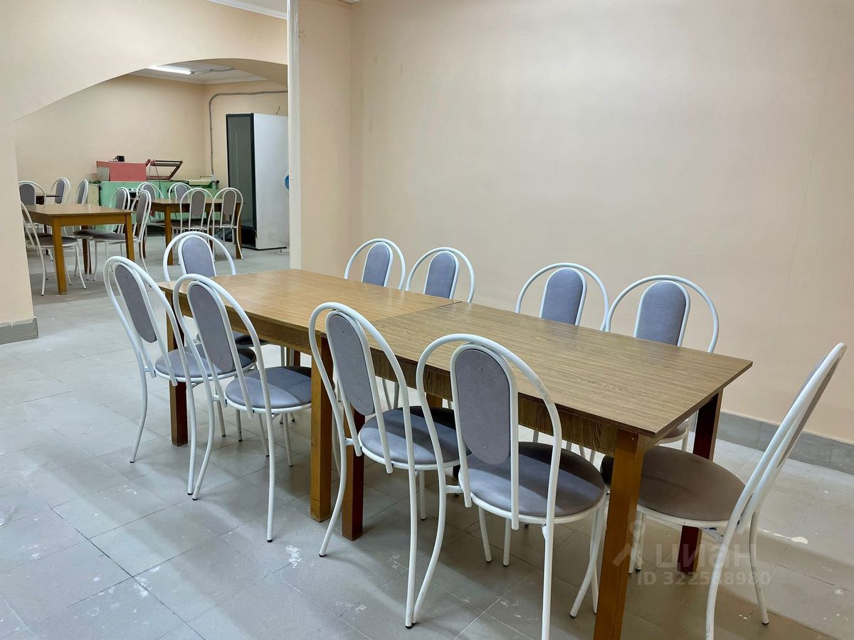 Отдельное помещение выделено под столовую со столами и стульями, а также оборудованная кухня для приготовления пищи. Кухня оснащена холодильниками, плитами, вытяжками. В обеденной зоне более 30 посадочных мест.