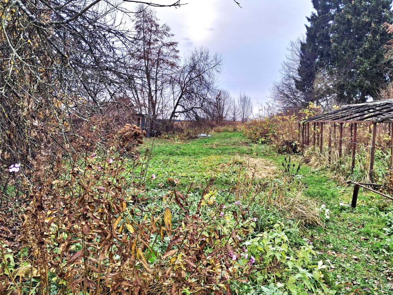 Земельный участок ровный правильной формы, широкий. Вполне можно построить дом, баню, беседку.