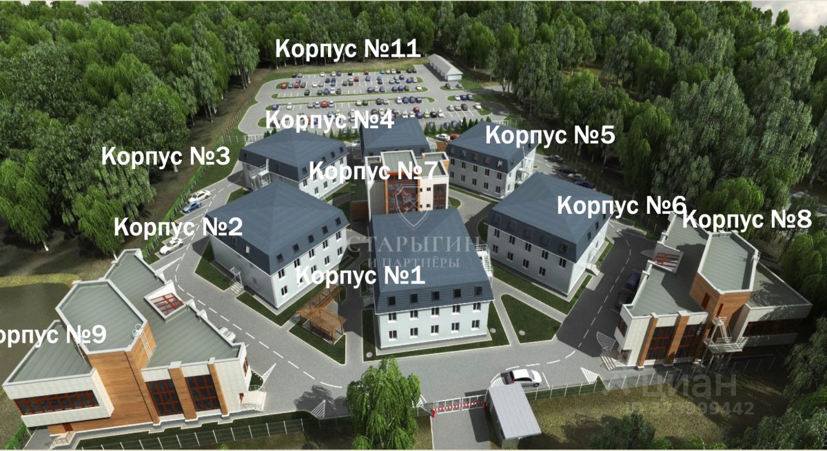 - 9 отдельно стоящих трёхэтажных зданий (жилой и сервисный фонд), - Отель ''Авиаотель'', - 2 корпуса под хостелы, - Баня/SPA-комплекс, - Сервисный центр, - Огороженная территория с охраной и системой доступа, - Просторная парковка на 560 машиномест.